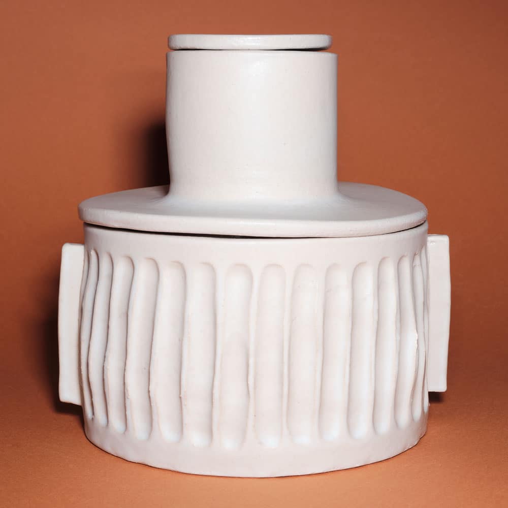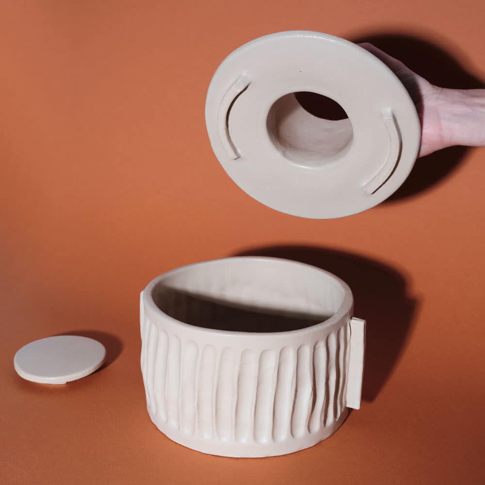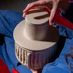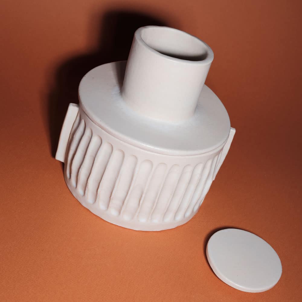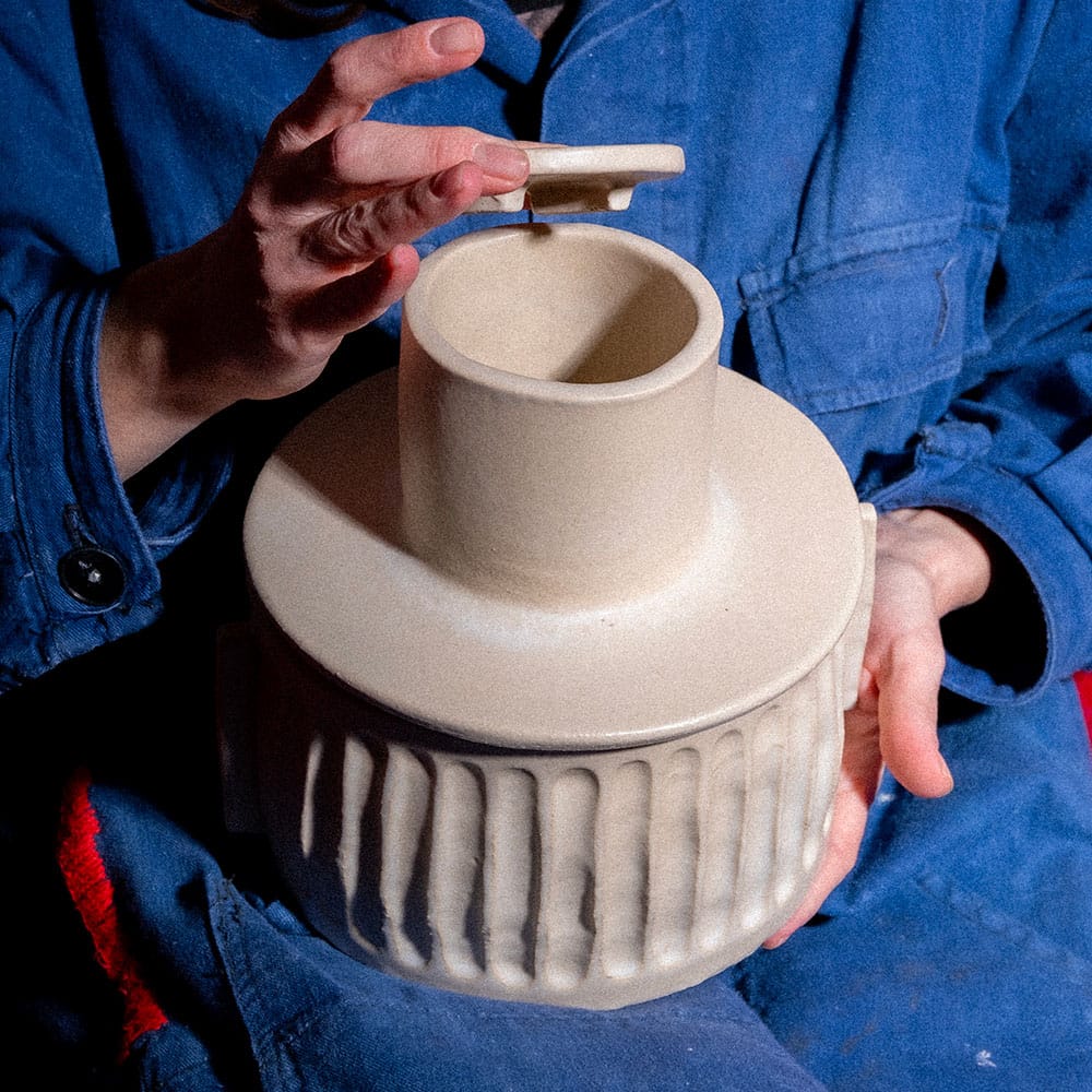 The Tajine Vase is hand-built. It is made out of stoneware and glazed, either on the inside and on the outside, with a transparent matt glaze. It consists of three parts: the body, the neck and the top. The neck can be flipped upside down, in order to change the shape and the usage. In fact, it can be used as a vase for flowers and plants, or as a proper Tajine to serve your favorite recipes.